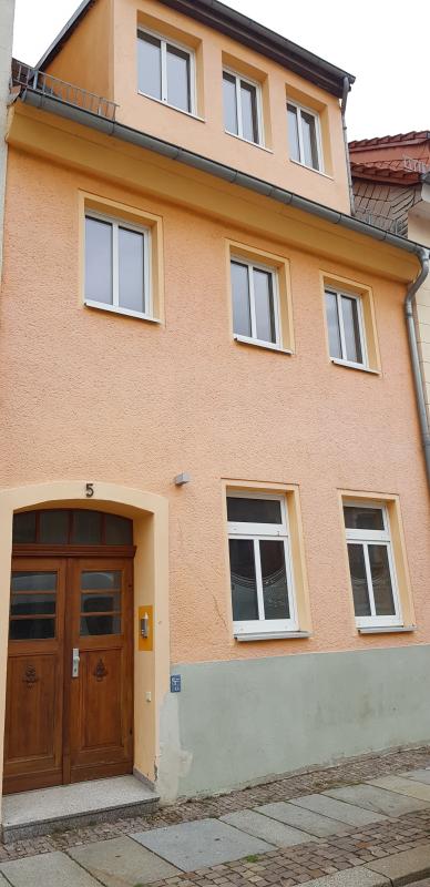 Zum Verkauf wird ein dreistöckiges, denkmalgeschütztes Reihenhaus im Zentrum von Döbeln angeboten.