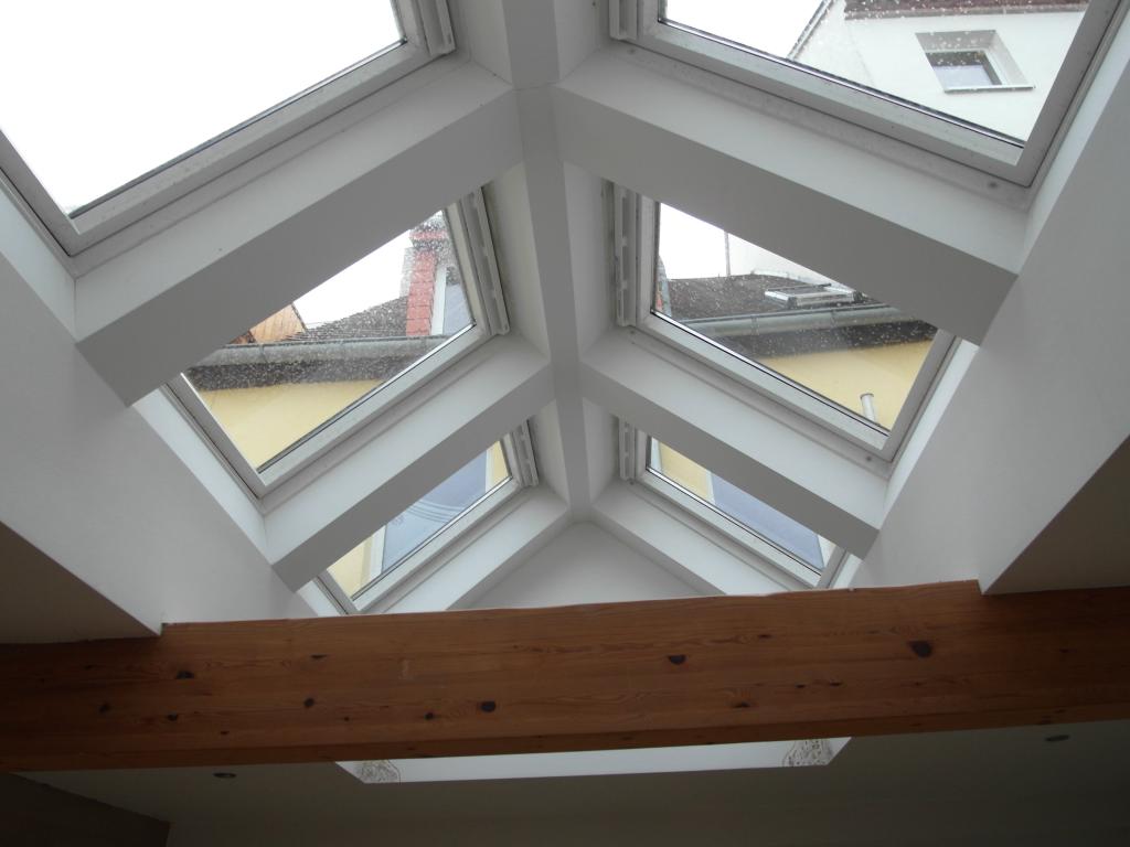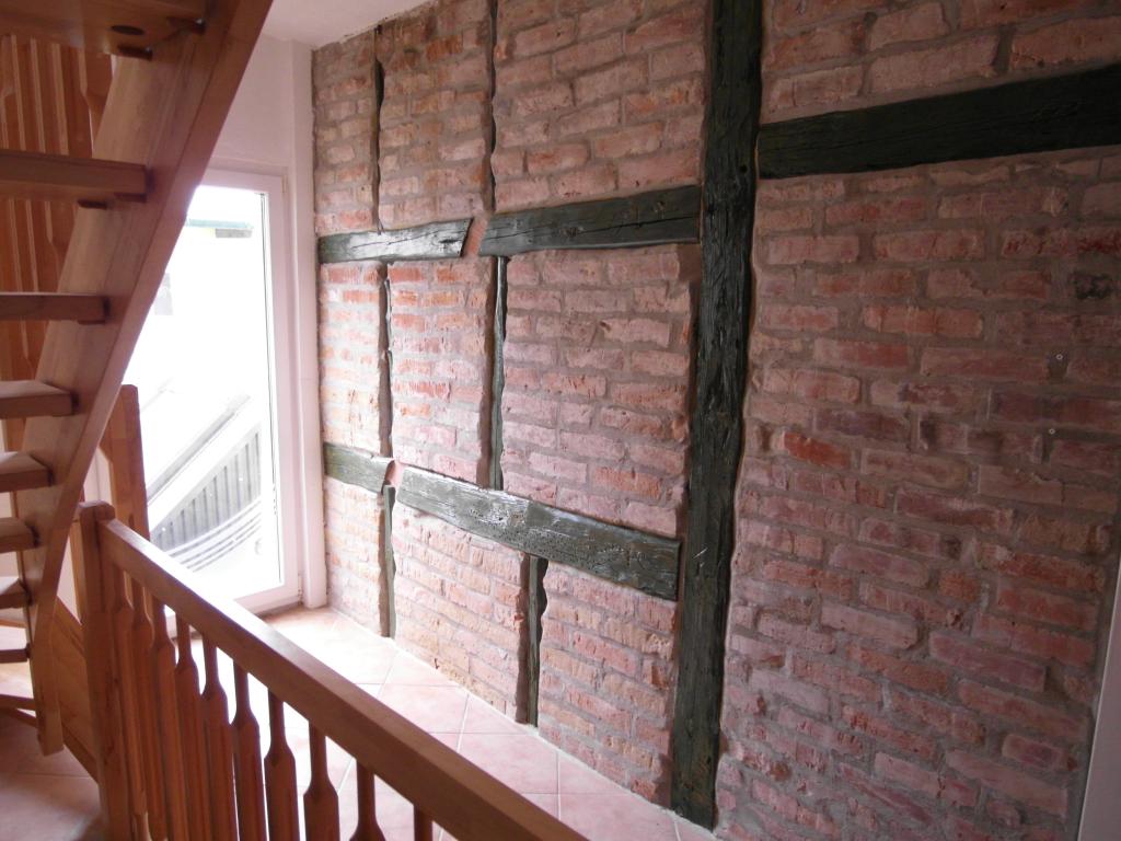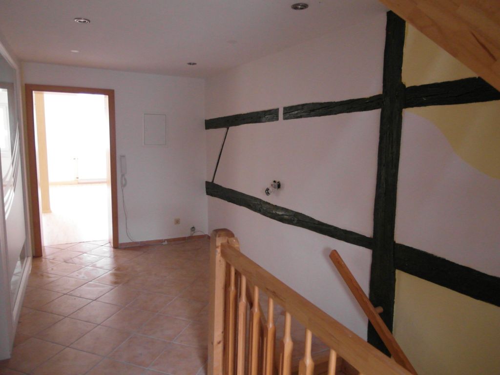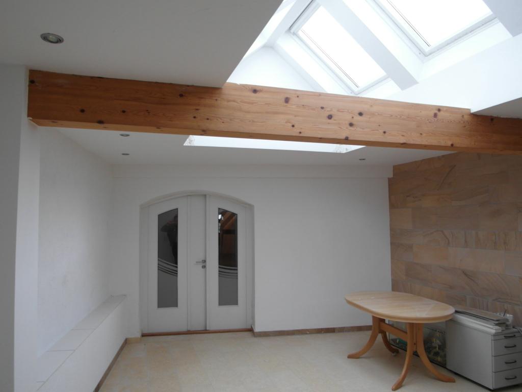 Das Obergeschoss im Haupthaus umfasst ein großes Wohn- oder Schlafzimmer, eine Küche und ein großes Bad. Über eine Dachterrasse kann man vom Haupthaus zum Hinterhaus gelangen.