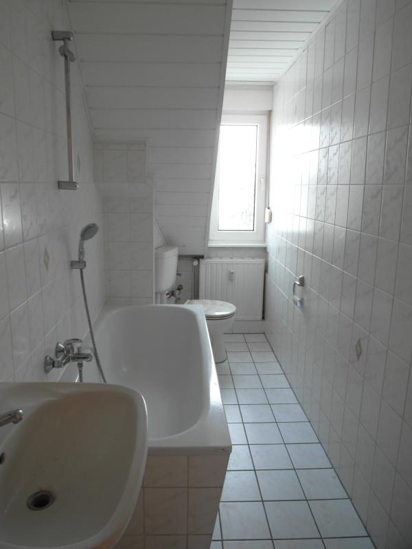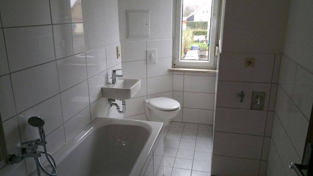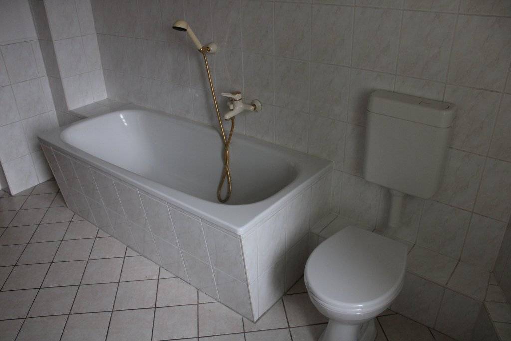 Die Küche und das Bad sind gefliest. Das Bad verfügt über eine Badewanne.